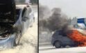 Seyir halindeki araçta yangın çıktı