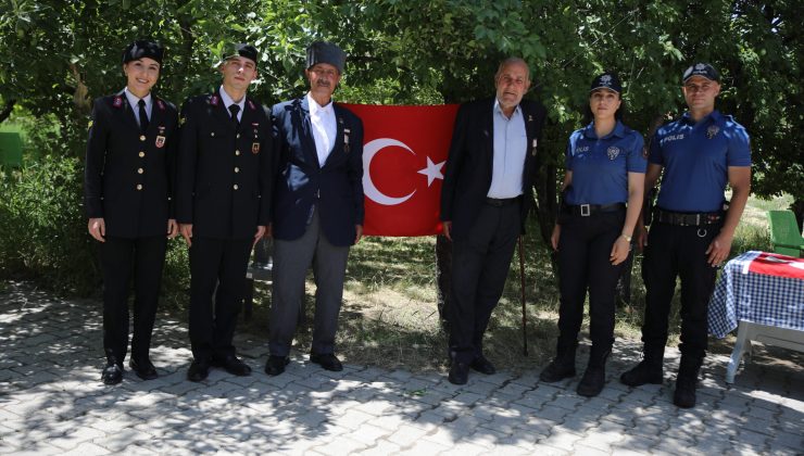 Erciş ilçesinde yaşayan Kıbrıs gazisi, ziyaretine gelerek kendisine Türk bayrağı hediye eden polis ve jandarma personeliyle yaşadıklarını gururla paylaştı.